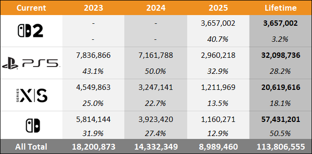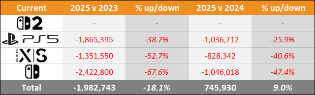 Note: VGChartz estimates for 2025, 2023 and 2022 September includes 43 weeks, and estimates for 2024 include 44 weeks.