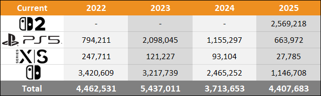 Note: VGChartz estimates for 2025, 2023 and 2022 September includes 43 weeks, and estimates for 2024 include 44 weeks.