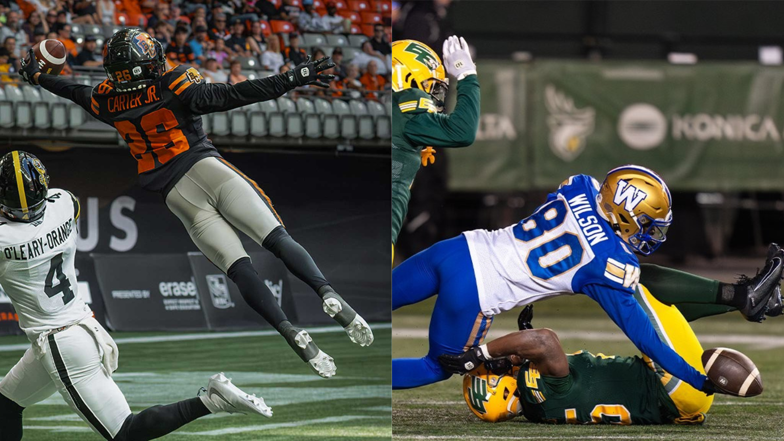 BC Lions defensive back Robert Carter Jr. was destined for that crown after he took to the air against the Hamilton Tiger-Cats in Week 8, going viral for a one-handed diving interception in the end zone. The stunning play remained the undisputed highlight of the season for 11 weeks until Winnipeg's Ontaria Wilson drew international attention with an incredible juggling touchdown last Saturday.