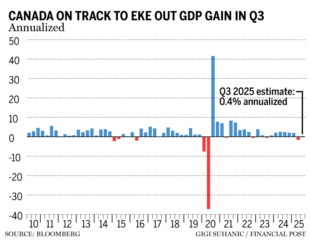 Growth of 0.4 per cent is expected in the third quarter, Statistics Canada said Friday, positioning the Canadian economy to avoid