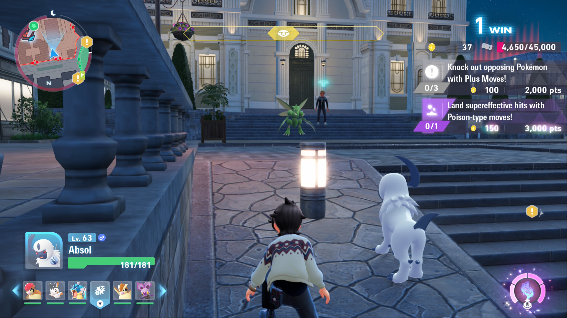 Then, at night, I gather points to get to my next Promotion match or work in the Wild Zones to catch Pokémon that are only available in the dark. Promotion matches are battles with tough trainers that let you move up the ranks in the Z-A Royal tournament. To partake in one of these, you need to acquire points in the nighttime battle zones. While I was excited about this new Z-A ranking system when I started the game, sadly, it’s mostly a thin facade over traditional Gyms, so don’t get your hopes up expecting anything super new.