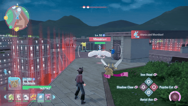 This sets the game at odds with itself. Going in, I had dreams of a world full of Pokémon getting up to hijinks like the short film from 2000, but sadly, it doesn’t reach those highs very often. This is hit home even harder whenever you come across a fleeting moment of strong worldbuilding. For instance, while exploring near the start of the game, I walked across a thin bridge connecting two rooftops, the Pidgeys perched there took off and flew away like real birds.