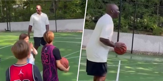 Watch a 'nervous' Michael Jordan take a free throw challenge