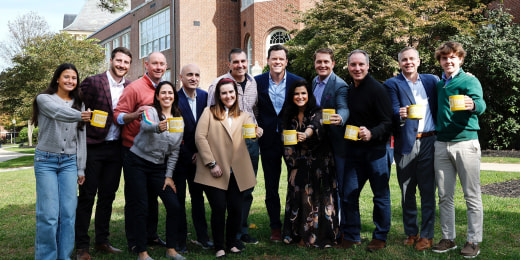 Fans trade an Oktoberfest mug for a Sunday TODAY mug in Munich