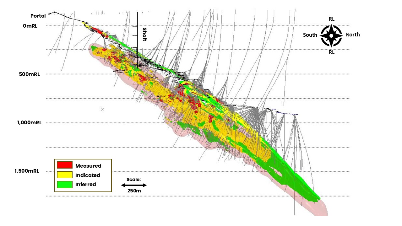 Drilling from underground will prioritise conversion of the higher grade 29Mt of Inferred Mineral Resources into the higher confidence M&I category in preparation for the Feasibility Study expected to be completed in the second half of 2026 (Figure 5). In a Feasibility Study, only the higher confidence Measured and Indicated Mineral Resources can be used in developing the mine economics and therefore maximising M&I is critical to demonstrate the true scale and economic potential of the deposit.