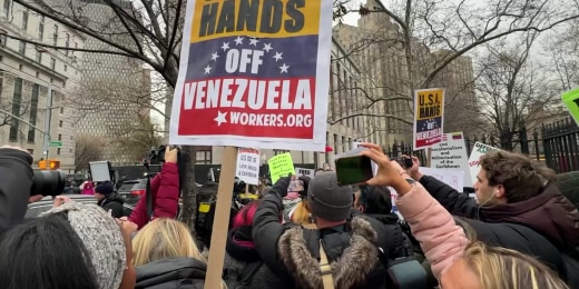 Demonstrators protest outside a New York courthouse ahead of Maduro's indictment