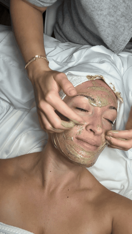 Once the herbs are applied and rubbed into the skin, they are rinsed off followed by a mask and care products, which vary depending on the type of green peel you receive. For my energy peel, it's a cream-based mask; long-awaited relief after herbs.