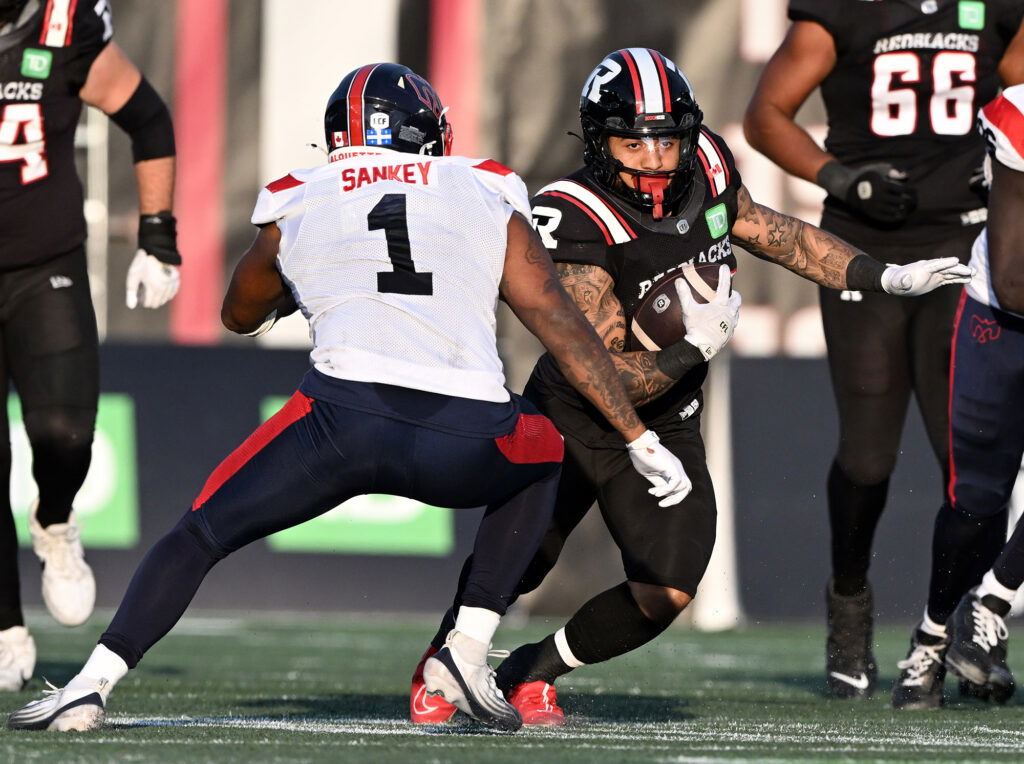 Что касается канадца Дэниела Адебобойе, его единственный керри пролетел два ярда, но он сделал четыре ловли на 34 ярда (24 из которых последовали после ловли) и тачдаун. Он также провел очень хедз-ап игру, чтобы погасить фальшивый пант «Монреаля» во второй четверти, что привело к потерям при даунах.