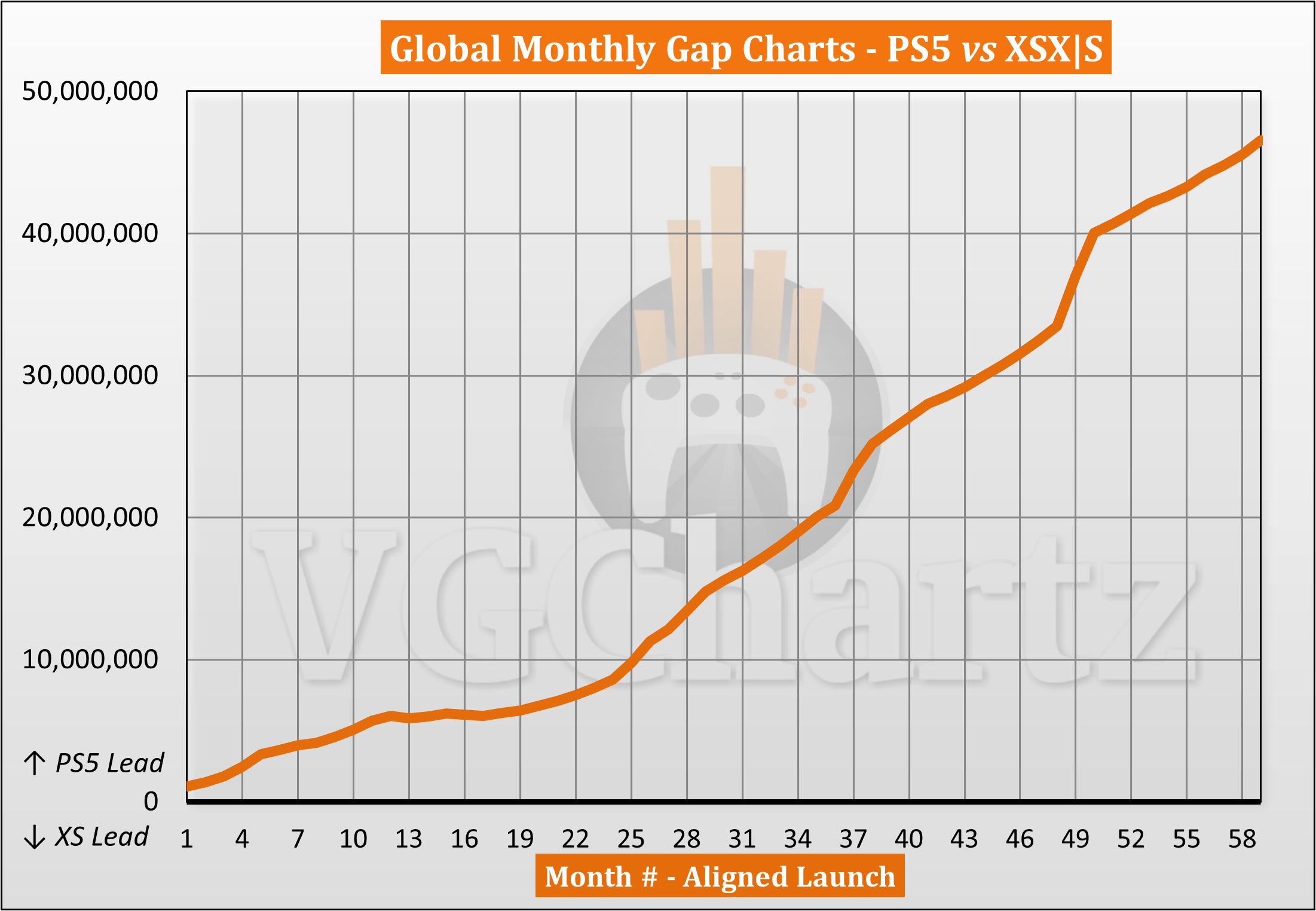This monthly series compares worldwide sales of PlayStation 5 and Xbox Series X|S.