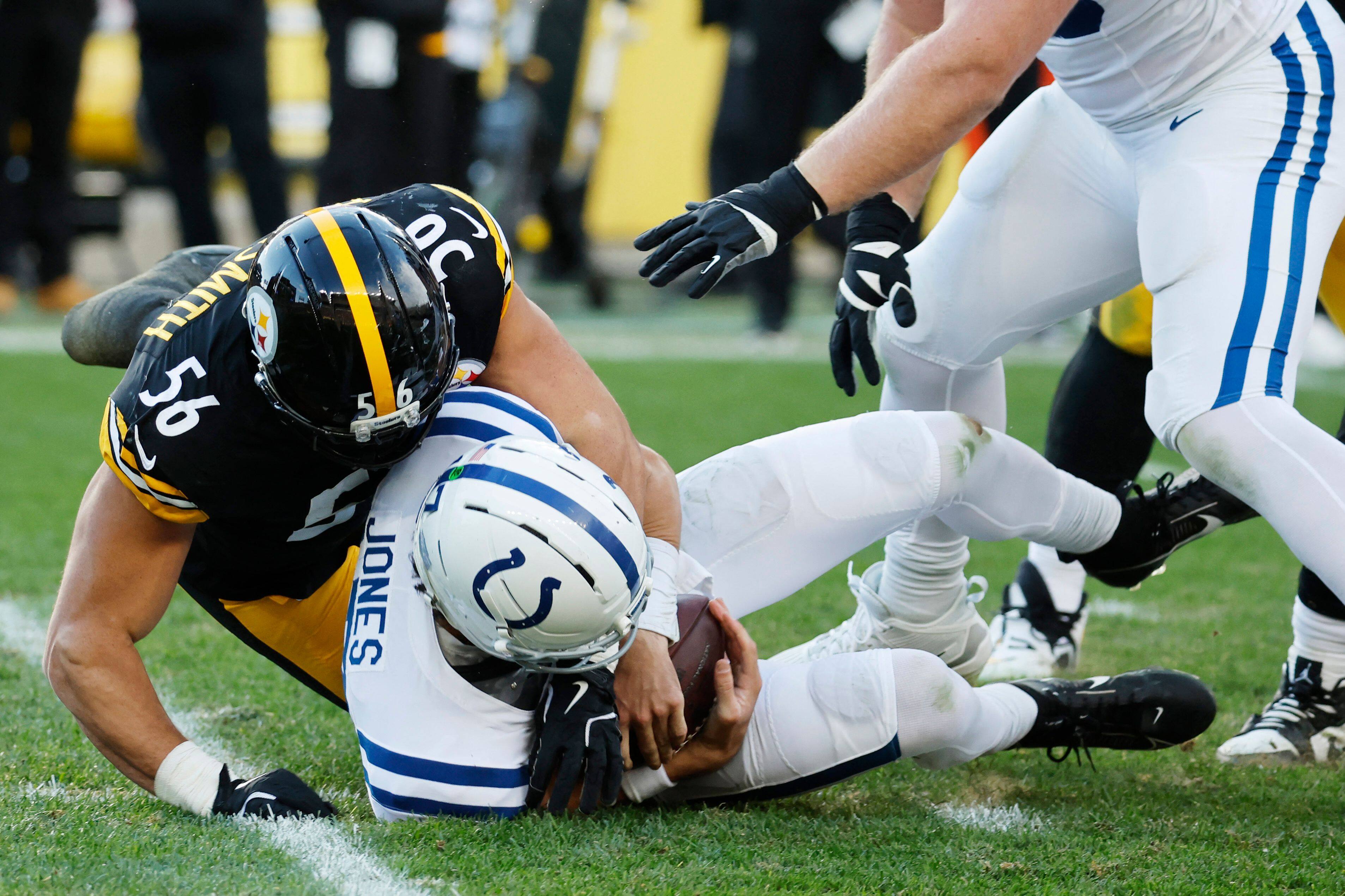 The Colts were atop the NFL with a 7–1 record before traveling to Pittsburgh and being surprised by the Steelers 27–20. The Steelers gained just 225 yards of total offense, but their success can be attributed to the fact that they committed at least six turnovers. Quarterback Daniel Jones, the true Cinderella story of the first half of the season, was the victim of three interceptions in addition to two errors. A real return to Earth! Jones' third interception, by Joey Porter with less than three minutes to play, was particularly offensive.