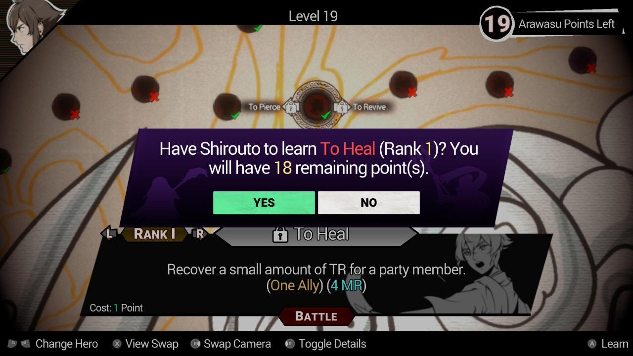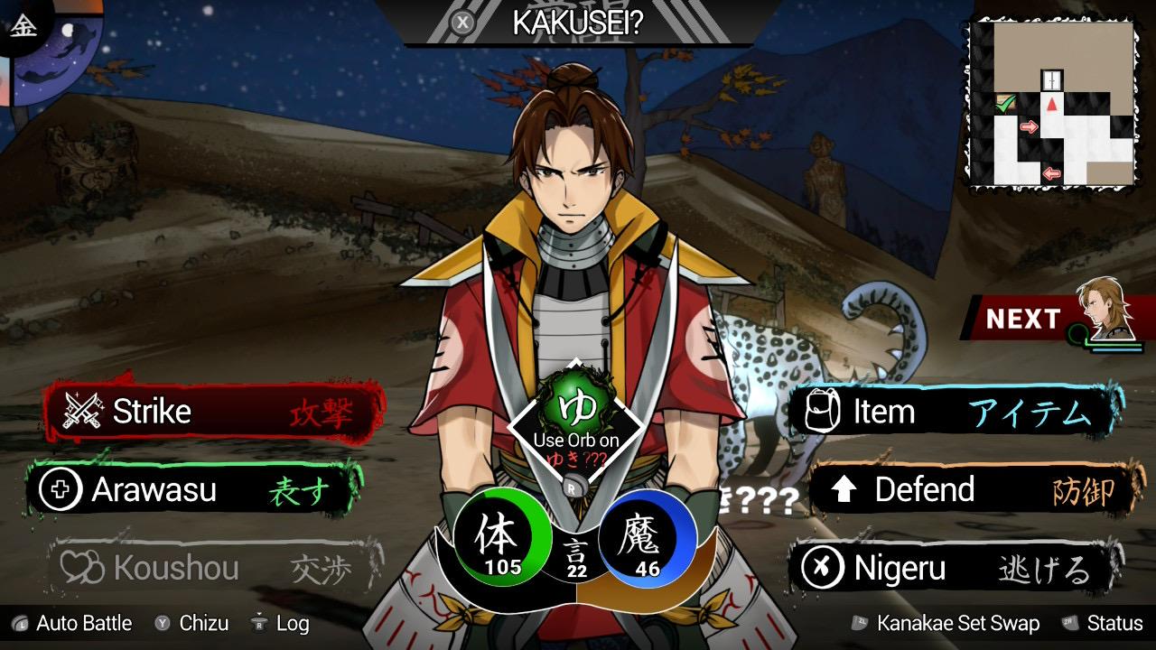 Luckily, the orb system is not the only way to succeed in battle (although it is the most essential). As you exploit elemental and ontological weakness, you'll accumulate Gengoryoku, or language points, which further increase each hero's damage output. Conversely, if your attacks are nullified or reflected, your language points will drop and your overall damage will be reduced. For a while, Gengoryoku isn't all that important. That all changes toward the end of the second labyrinth, when you unlock Arawasu skills. Just as you're feeling like the Kanakae system has reached its limit and lamenting the absence of traditional role-playing spells, buffs, and debuffs, the game answers the call in a big way.