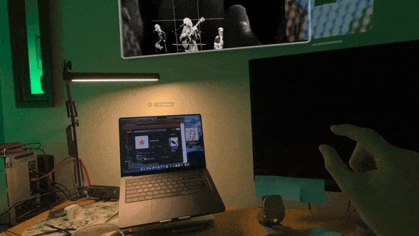 Я считаю, что использовать его на своем столе с монитором, ноутбуком и всем остальным дерьмом, которое обычно разбросано вокруг, тоже кажется немного странным. Вы можете использовать его где угодно; в этом красота гарнитуры, но есть что-то в том, что я нахожусь в виртуальном пространстве и все еще имею перед собой гигантский черный прямоугольник, что кажется глупым и выглядит раздражающим. Чтобы исправить это, я обычно набираю около 25 процентов в виртуальное рабочее пространство, но тогда это портит новые виджеты, которые мне тоже хотелось бы увидеть (и поделиться с людьми поблизости, но я уже слишком много об этом сказал).