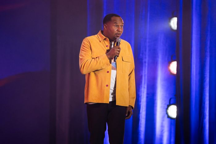 Catchphrases are a high-wire act. They deliberately swim upstream against the current fashion for naturalism in stand-up sets, and as a result, they can feel dated or over-obvious. But the catchphrase in Earthquake’s Joke Telling Business is really canny. As he talks about his family, Black fatherhood, marriage, and immigration politics, he keeps inserting the same pivot line between each section. “These ain’t jokes,” he says, after a bit about hearing that his son’s college had an active shooter on campus. He molds them into jokes, of course — the shooter’s in the library, and Earthquake knows his son isn’t in there — but his perpetual assurance that they’re not is so deftly double-edged. His material is as political and topical and opinionated as any comedian doing self-serious confessional stuff with very few punchlines, but it’s easy to dismiss someone like Earthquake because his punchline-heavy, deliberately mannered style doesn’t look like our current flavor of truth-telling in comedy. The catchphrase is also a goad. He keeps insisting they’re not jokes … and then every time the crowd laughs, he’s won.