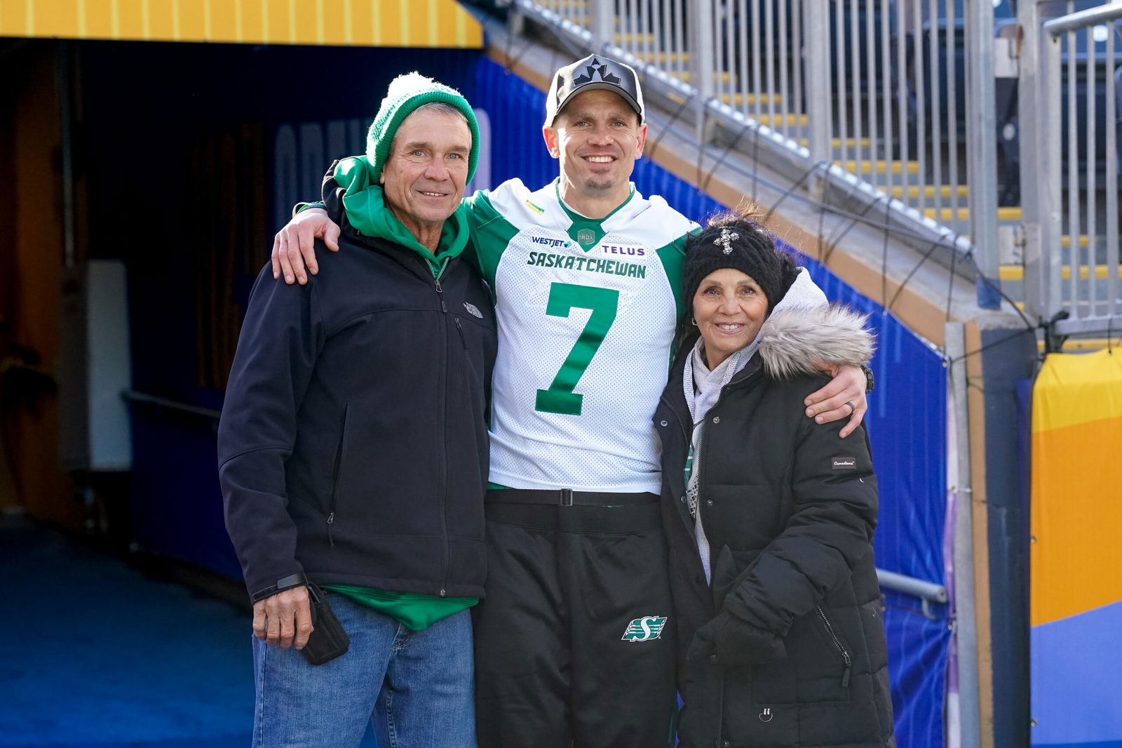 His dad and mom, Tom and Suzanne Harris, were at team practice, watching their son and teammates finish preparing for the Montreal Alouettes. Both parents were among the media at his news conference Saturday at Princess Auto Stadium.