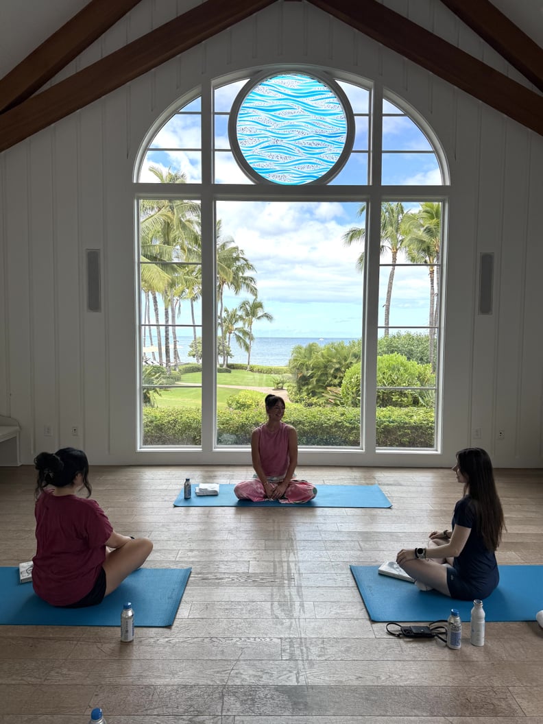 It's 8:45 a.m. and people are flocking to yoga classes at the chapel overlooking the ocean. This is one of the most beautiful views imaginable, a view that requires you to lie horizontally on a lounge chair. But I, like other visitors, didn’t come just for the beach. We came for the opportunity to make a rising dog with Because of the dawnco-founder Raise your tone.